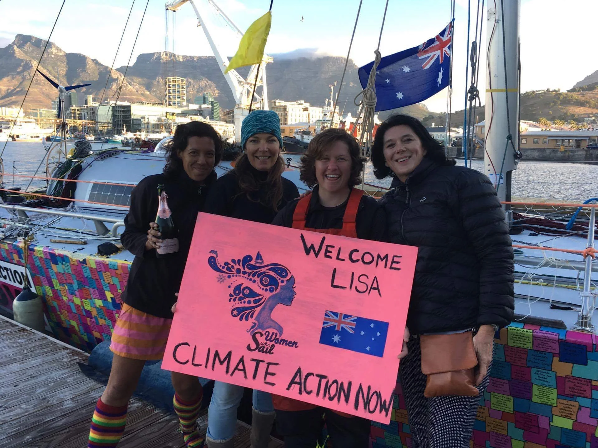 Lisa is safe and well. She has been welcomed into Cape Town by some members of Woman Who Sail. This was organised by an Australian Group called Woman Who Sail Australia. Lisa is staying with some of these girls for a week or so while she sorts herself out. They are looking after her really well.